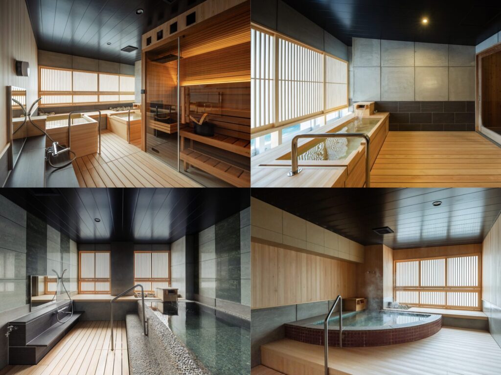 雨の音。風の音。川のせせらぎ。お湯の音。桶の音。そして、美しい入浴専用音楽……。それらはどれも主張しすぎることがなく、なじんでいるのです。五感で楽しむ大浴場となっています。